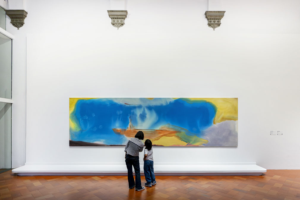 “Mountains and Sea” (1952) – “Helen Frankenthaler. Dipingere senza regole”, Palazzo Strozzi, Firenze, 2024. Photo OKNOstudio © 2024 Helen Frankenthaler Foundation, Inc. / Artists Rights Society (ARS), New York / SIAE, Rome