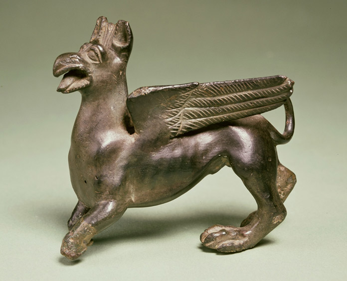 Tra i pezzi più affascinanti in esposizione spiccano la delicata statuetta votiva del “fanciullo con l’oca”, un bambino nudo con la tipica bulla (amuleto) al collo, e la figura di Laran, il dio etrusco della guerra (databile tra il 540 e il 520 a.C.), oltre al suggestivo Grifone, creatura ibrida con testa e ali d’aquila e corpo di leone.