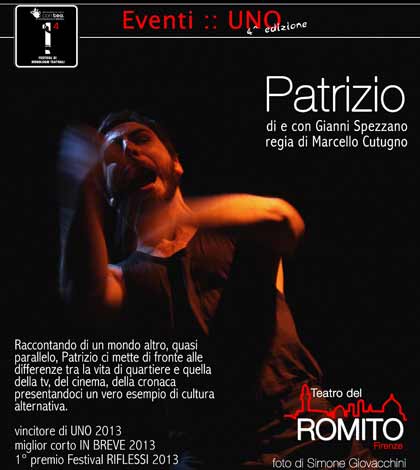 Al via un nuovo contest Fermati & Vinci! Partecipa al Contest e vinci 4 biglietti omaggio offerti dal Teatro del Romito di Firenze, per lo spettacolo Patrizio di e con Gianni Spezzano per la regia di Marcello Cutugno all’interno del Festival di monologhi “Uno” in scena sabato 16 novembre alle ore 21.00, presso il Teatro del Romito, in via del Romito 10 a Firenze. Per partecipare vedi sotto.
