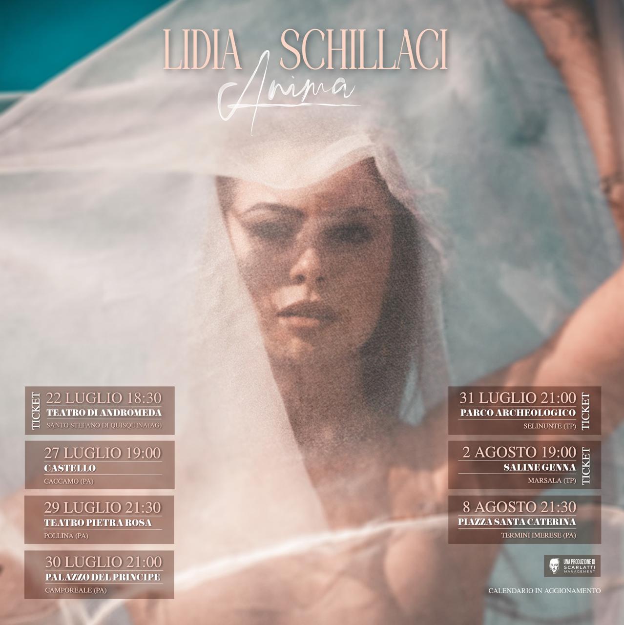Partirà il 22 luglio alle 18.30, da uno dei luoghi più suggestivi della Sicilia – dal teatro più alto del mondo – il Teatro di Andromeda di S. Stefano Quisquina in provincia di Agrigento il tour di ANIMA, il nuovo spettacolo scritto integralmente ed interpretato dalla straordinaria voce di Lidia Schillaci, produzione a cura di Scarlatti Management.