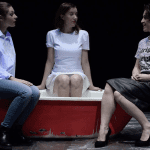 [ ] Paure e angosce condivise trovano rifugio e spazio sicuro nel bagno della casa di Versilia (Alice Corni), lasciatale dagli zii e condivisa dalla giovane dentista con Souvenir (Elisa Zanotto) e con Narcisa (Maria Chiara Caneparo), l’ultima arrivata in casa. Nella pièce di Stefania Tagliaferri e Verdiana Vono ci sono le domande di una vita che alla fine si trova il coraggio di cambiare andando verso l’aria che libera dall’apnea. [ ]