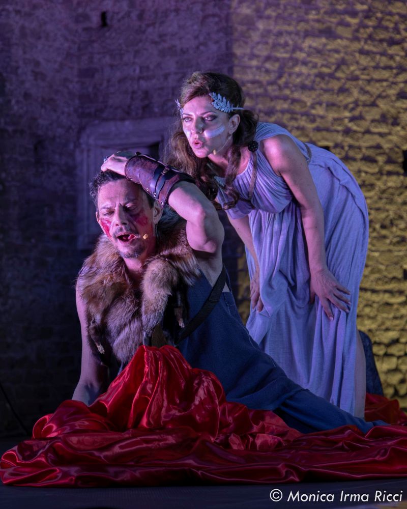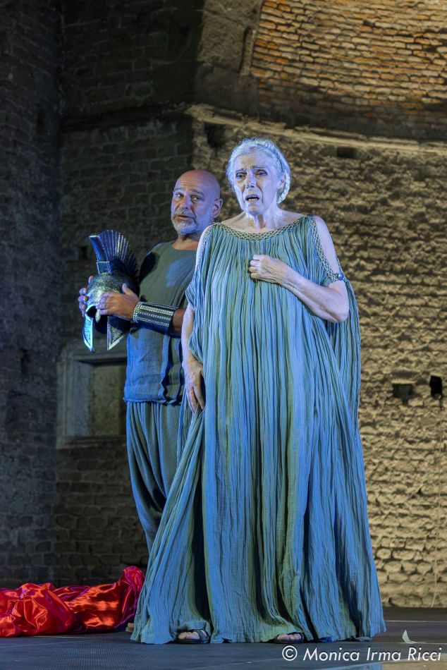 Ogni guerra è un immane misfatto dell’uomo. Un male assoluto per tutti, vincitori e vinti. In questa versione di Ecuba, agile e profonda, è la voce delle donne a risuonare alta nella dolorosa esperienza umana d’ogni tempo. Con un linguaggio asciutto, senza concessioni e di grande efficacia, l’adattamento rigoroso e moderno al tempo stesso, rispetta il testo greco ma diventa, a fronte di tutte le guerre che ci circondano, un testo quasi contemporaneo. Il cuore femminile di Ecuba urla, con tutta la forza dell’amore e della passione, la lacerazione di una madre, di una sposa, di una sorella, di una figlia. E’ l’annullamento di una stirpe, di una città, di una civiltà, di una memoria. E’ l’insostenibile consapevolezza della fine di un mondo. Nella messa in scena assume un ruolo molto importante anche la figura di Polissena, fuori da ogni canone, lontana da ogni ambiguità. Accanto alle due gigantesche figure femminili Odisseo, Agamennone, Taltibio e Polimestore rappresentano invece, quell’universo maschile condannato all’odio e alla guerra dai lacci fallaci e vincolanti dell’eroismo, dell’onore, della retorica della bella morte e della tradizione.