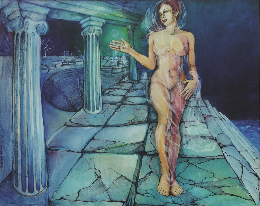 La sua memoria storica si mescola alla contemporaneità generando opere metafisiche dove la brillantezza del colore è di espressiva modernità.