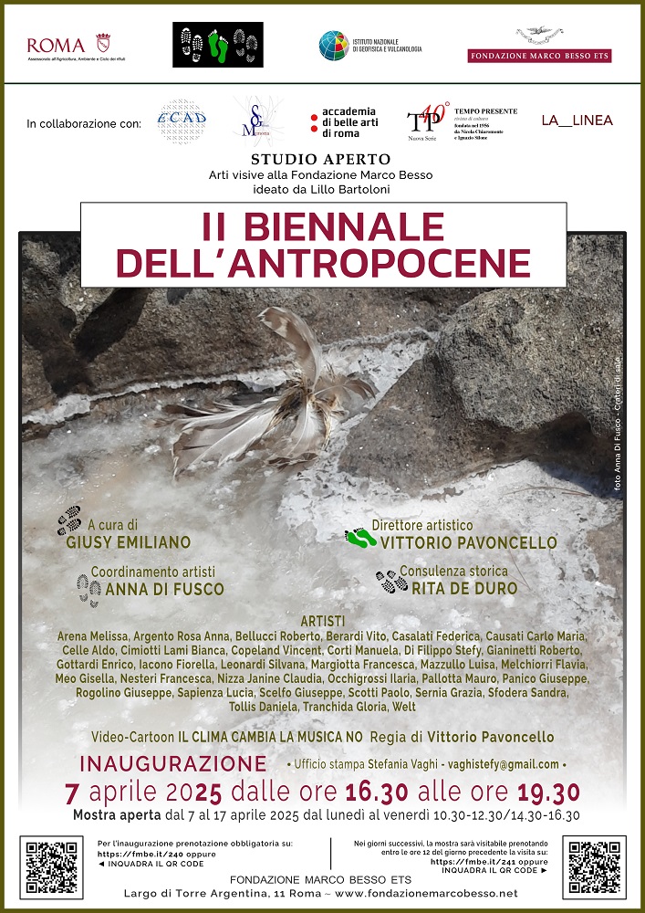 Sarà inaugurato il prossimo 7 aprile, presso la Fondazione Marco Besso, in Largo di Torre Argentina 11 a Roma, il secondo appuntamento della II Biennale dell’Antropocene a cura di Giusy