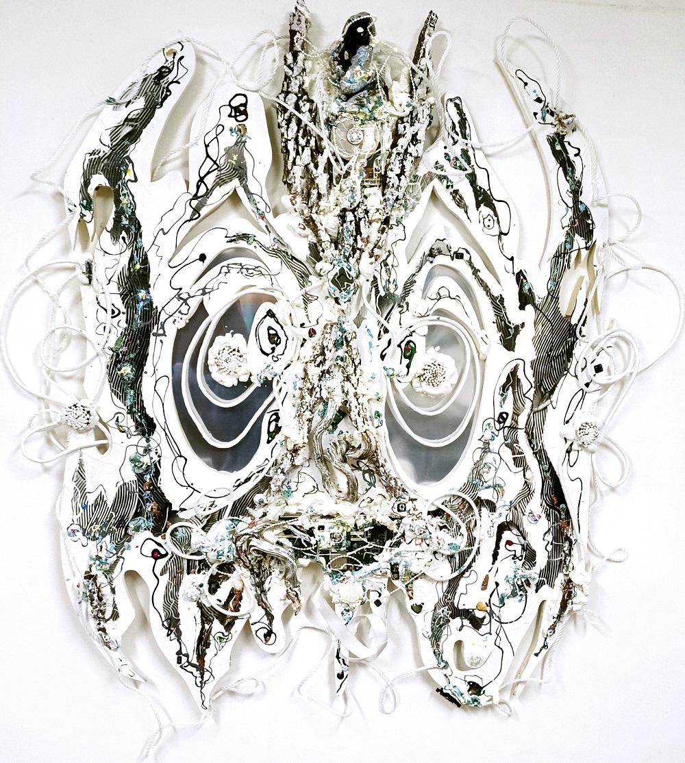 L’esposizione seguirà quindi due filoni narrativi, il primo verterà sulla metamorfosi e sul travestimento. A tal proposito è necessario citare le composizioni pittoriche di Susan Mains ispirate al rituale dello  Shakespeare Mas dove i soggetti sono le maschere del Carnevale a Carriacou. Tale produzione è testimonianza di un’espressione culturale unica derivata dalla colonizzazione dell’isola da parte dei francesi e dall’imposizione del cattolicesimo su gran parte della popolazione ridotta in schiavitù in base al Codice Nero del 1685. E ancora tralasciando citazioni storiche, emblematiche saranno le narrazioni estetiche di Cristina Corvino, Alfonso Mangone, Armando Velardo, Giancarlo Flati che, seppur con materiali e stili eterogenei, indagheranno sul concetto di trasformazione e nuovi linguaggi al fine di comprendere l’umano nella sua interezza.