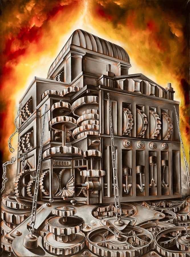La pittura di Antonio Servillo si inserisce in questa dialettica del reale, tra la ricerca di un paradiso perduto ed il rischio di sprofondare nell’abisso, nel tentativo di capire dove si orienta l’attuale società. Egli si dimostra sensibile agli avvenimenti dell’ultimo quarantennio di storia, da quando cioè ha iniziato la sua attività pittorica: i suoi quadri fioriscono sul terreno della globalizzazione negli anni 80 del secolo scorso, del crollo del muro di Berlino nel 1989, delle guerre successive, della diffusione di Internet negli anni 90, nel crollo delle torri gemelle del 2001, del terremoto del 2002, della pandemia degli ultimi anni, dell’affievolimento della fede cristiana e di altre religioni, che continuano comunque a dare un orientamento che va oltre i confini della vita umana.