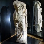 Il resto delle installazioni è, viceversa, tutto nei toni del bianco, per meglio integrarsi con le sculture presenti: una mostra che entra in punta di piedi negli allestimenti creando un dialogo armonico tra antico e moderno.