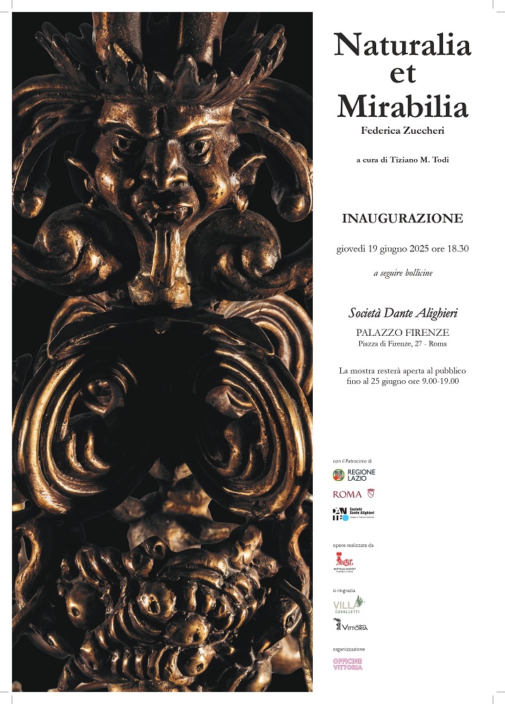 Inaugurerà il prossimo giovedì 19 giugno alle ore 18.30, presso gli spazi espositivi della Società Dante Alighieri, in Piazza di Firenze 27 a Roma, la personale di Federica Zuccheri, “Naturalia et Mirabilia”, a cura di Tiziano M. Todi, con il patrocinio della Regione Lazio, di Roma Capitale e della stessa Società Dante Alighieri.