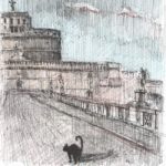 Un’opera ideata durante il periodo del lockdown che ha come protagonisti due capisaldi della vita dell’artista: la sua amata Roma ed il suo gatto nero Eros.