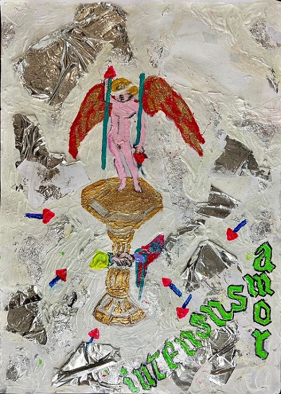 Attraverso il suo uso personale del colore e della composizione, crea opere che fungono da specchi per l’anima dello spettatore, richiamando emozioni sepolte e risvegliando sensazioni dimenticate. Ogni elemento, dall’inclusione di materiali inaspettati come pietre, specchi e metalli preziosi, alla complessità dei suoi strati materici, sembra tessere una trama di mistero e rivelazione.