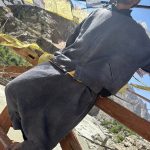 In esposizione troviamo varie creazioni uniche: dal completo in lana gessata a quello in lino verde, dal kimono, al completo giacca e pantalone Aikido, fino all’iconico pantalone Avant-Garde. Per poi passare ai completi Poncho e Bomber in lana di alpaca, ed ai completi in lino rosso e in lana di yak.