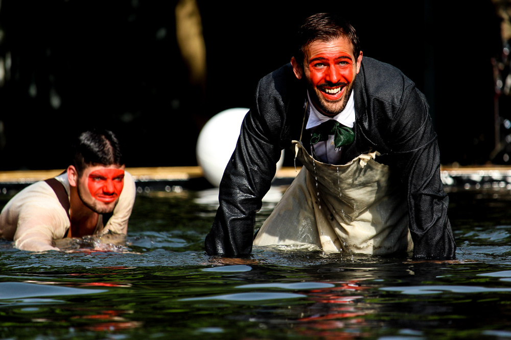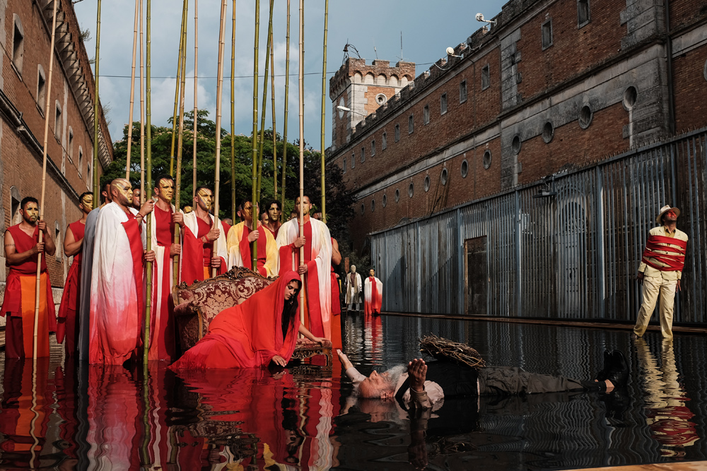 La Compagnia della Fortezza di Volterra festeggia i suoi 30 anni con il nuovo spettacolo Beatitudo, frutto di due anni di lavoro su testi di Jorge Luis Borges, creato dalla mente geniale e visionaria di Armando Punzo. Una genialità che si sposa con un pizzico di follia e con l’immensa vasca ricolma d’acqua che occupa l’intera scena, ossia il campo da calcetto dei detenuti del Carcere di Volterra. Le barriere sono abbattute, ed in un flusso onirico inizia il viaggio labirintico tra le parole di Borges ed i suoi personaggi lievi e poetici, che danzano riflessi sullo specchio incrinato dell’acqua. Le note cariche di pathos dell’eclettico polistrumentista e compositore Andrea Salvadori rendono i tableaux vivants ancor più ammalianti e introspettivi, e guidano lo spettatore verso dimensioni altre e corroboranti.