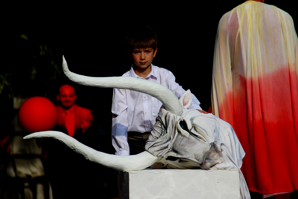 «Voleva sognare un uomo, sognarlo con minuziosa interezza, e imporlo alla realtà (…) Asciugare le acque di un fiume in piena, prosciugarle prima che inondino le pianure circostanti travolgendo tutto quello che incontrano sul loro cammino, procurando distruzione e morte, è questo il teatro che cerca di arginare la vita che dilaga in noi senza nessun freno, vita che rompe gli argini e si insinua in tutte le pieghe della nostra esistenza per possederci e soffocarci con il suo fluido limo, è questo il teatro che solleva solide barriere e svela in noi spazi inesplorati e segreti, impermeabili e irraggiungibili da queste acque sinistre e violente. Il fiume della vita scorre fino a che non inizia a scorrere la montagna che in esso si specchia immobile, silenziosa e imprevedibile.» (Armando Punzo)