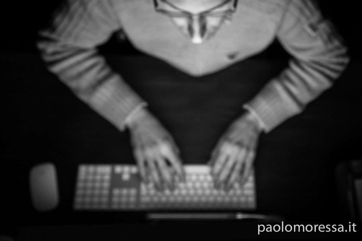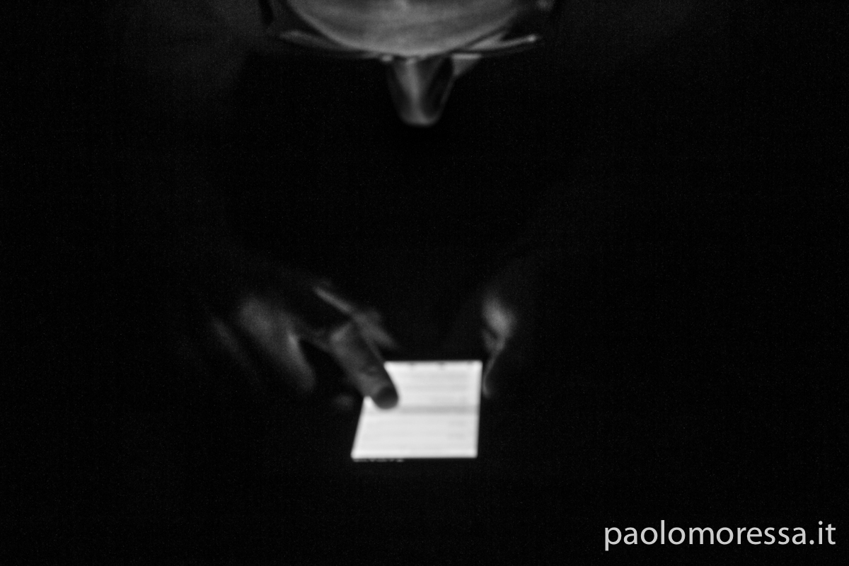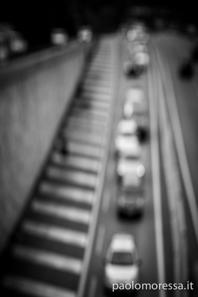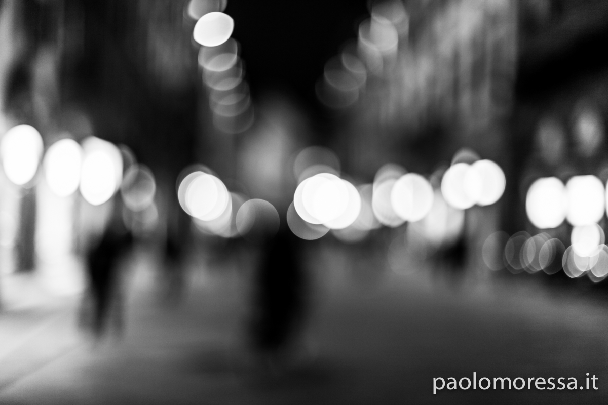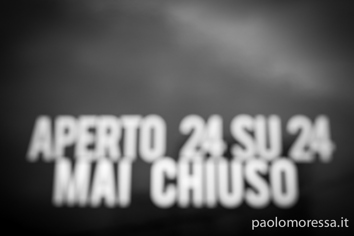 Paolo Moressa parte da un’immagine sfocata perchè ciò che vuole dire non è nitido, come non è nitido il futuro di ciò che ci circonda. Società, appunto, che oggi più che mai ha come riferimento simboli estetici, modi di essere e di fare che portano all’allontanamento degli uni dagli altri. I punti di riferimento vengono creati da macchine senza anima e le nostre menti vengono svuotate dalle emozioni, dalla creatività. L’elemento umano diventa veicolo creatore di ricchezza. Un contenitore vuoto che produce energia fine a se stessa e non solo.