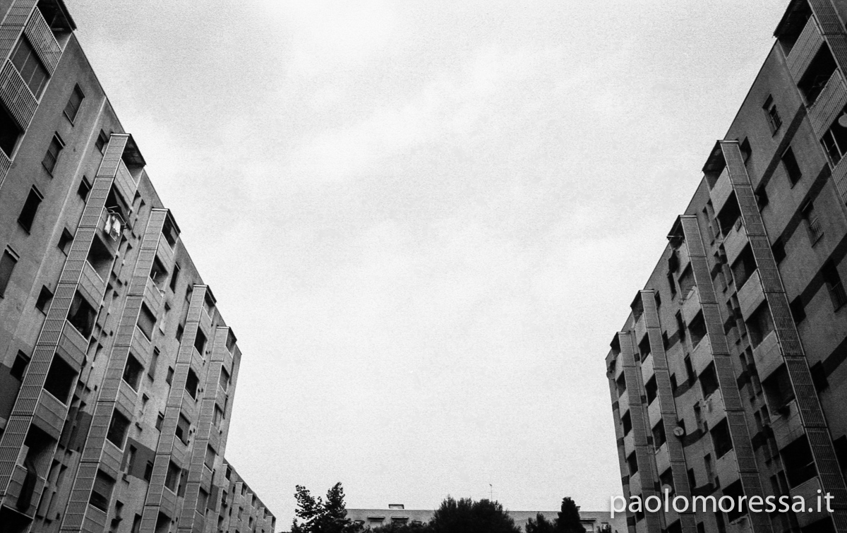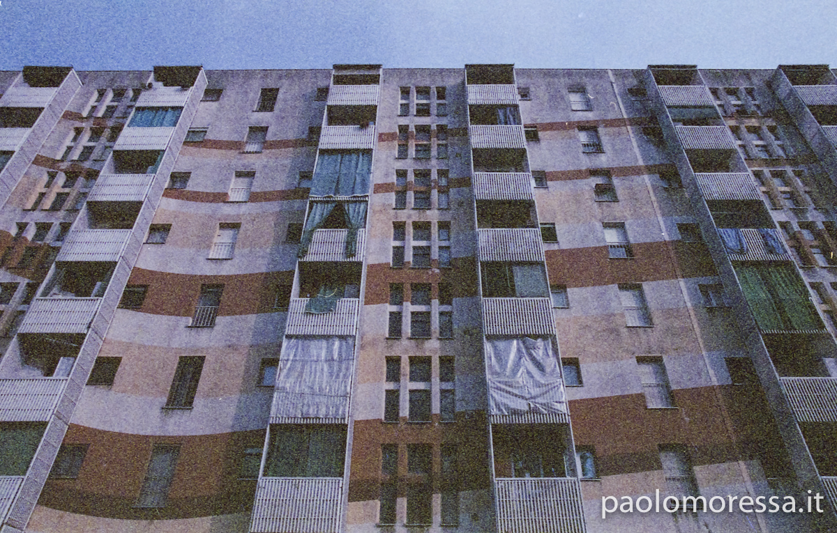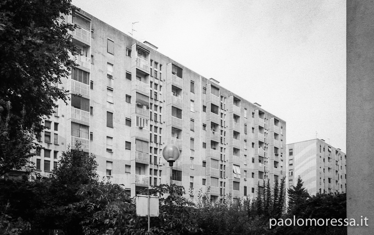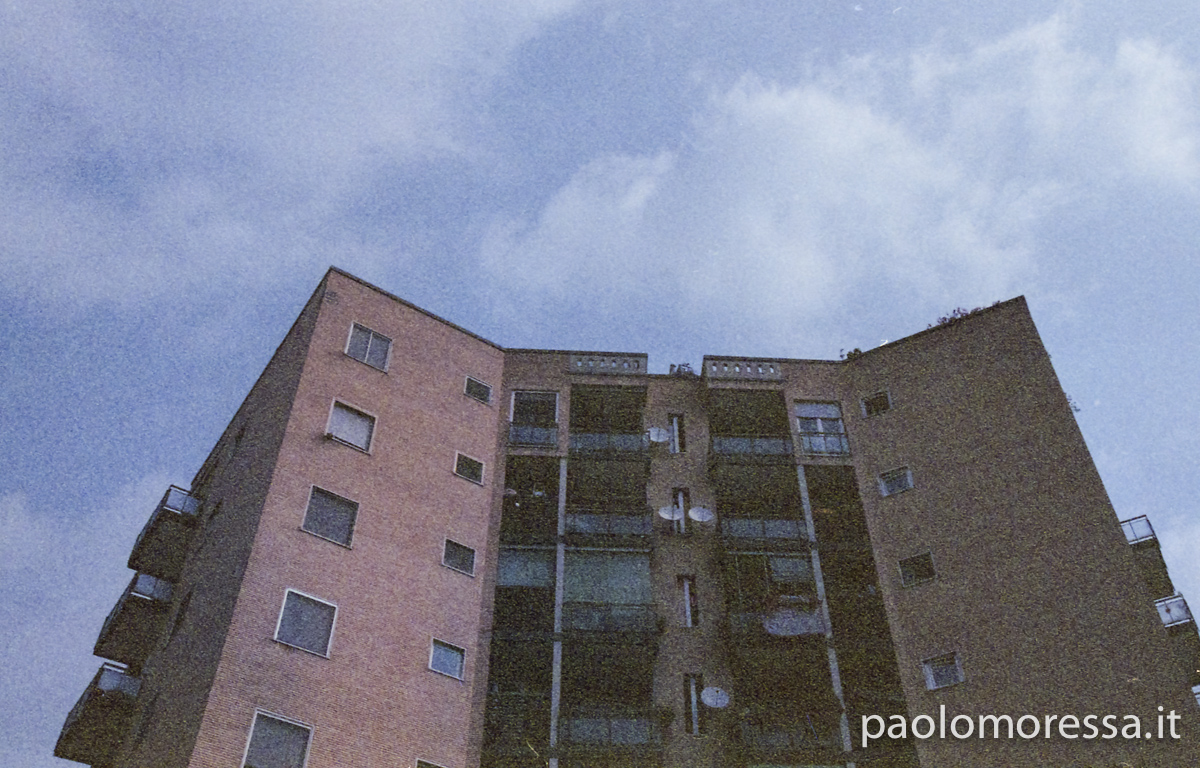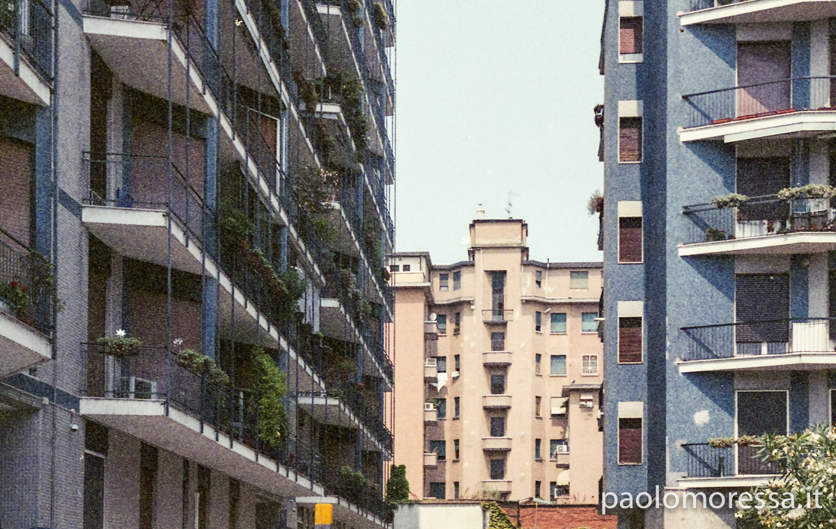 Una grande e complessa città italiana, una calda giornata estiva e un supporto fotosensibile d’altri tempi. Tutti questi elementi raccontano lo spazio che l’uomo si è ritagliato col tempo nell’area periferica di Milano, palazzi su palazzi senza identità che racchiudono mille storie e mille diversità.