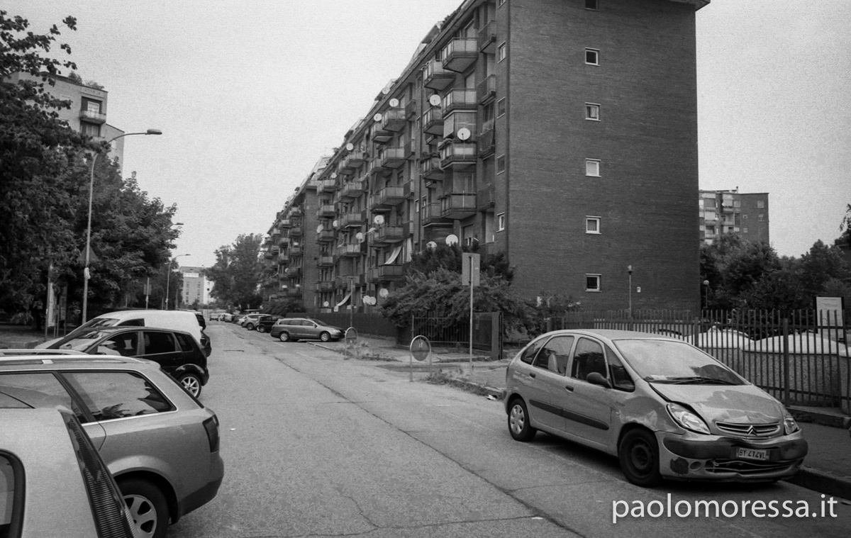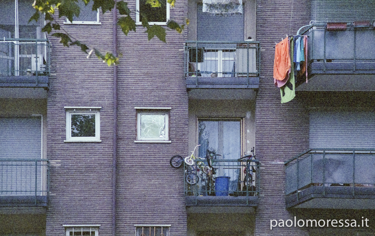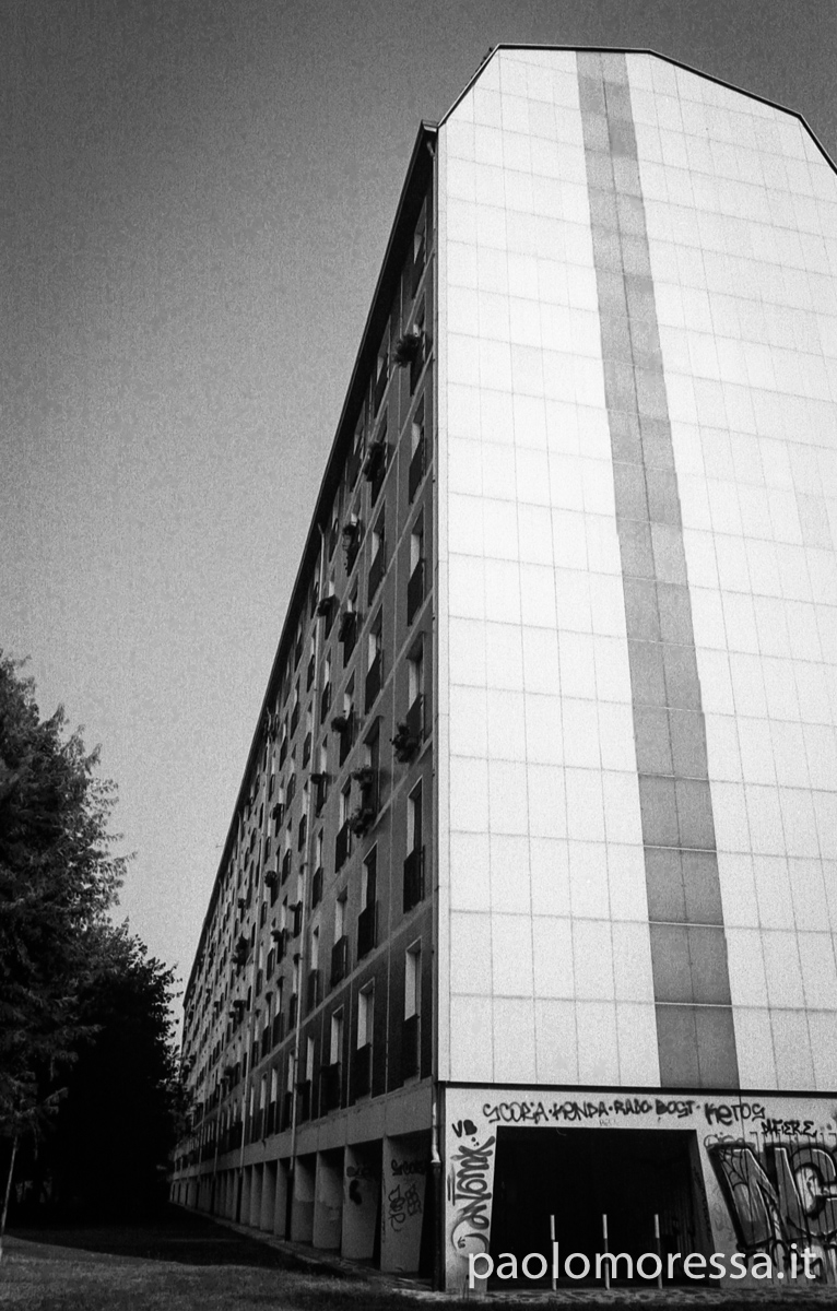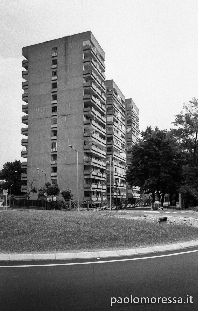 Una grande e complessa città italiana, una calda giornata estiva e un supporto fotosensibile d’altri tempi. Tutti questi elementi raccontano lo spazio che l’uomo si è ritagliato col tempo nell’area periferica di Milano, palazzi su palazzi senza identità che racchiudono mille storie e mille diversità.