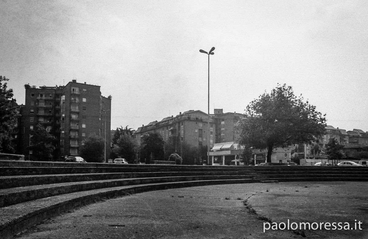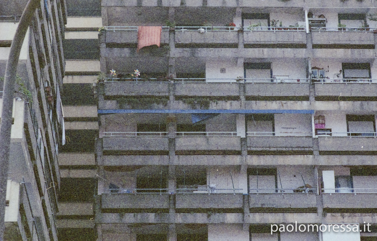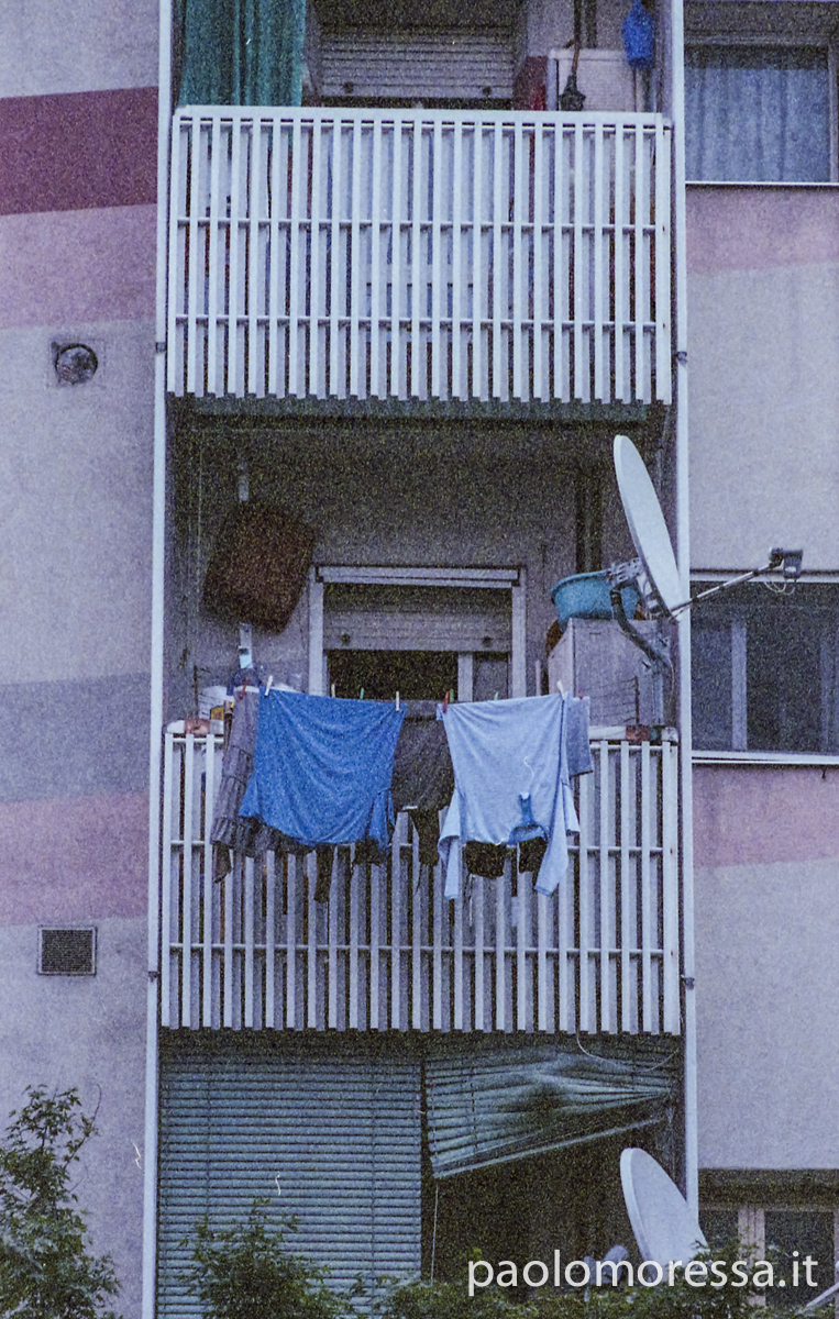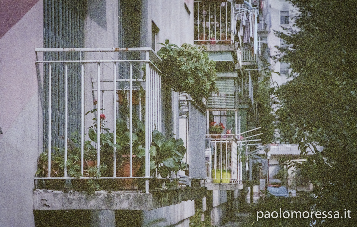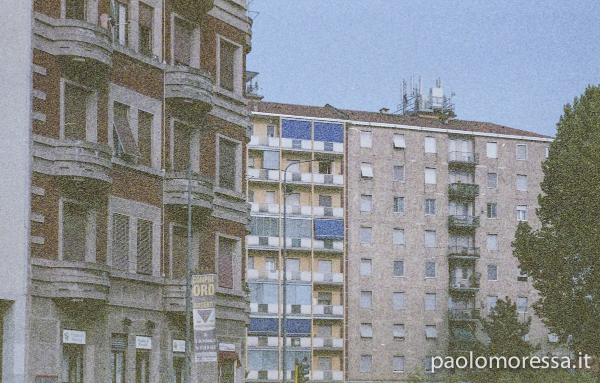 Una grande e complessa città italiana, una calda giornata estiva e un supporto fotosensibile d’altri tempi. Tutti questi elementi raccontano lo spazio che l’uomo si è ritagliato col tempo nell’area periferica di Milano, palazzi su palazzi senza identità che racchiudono mille storie e mille diversità.