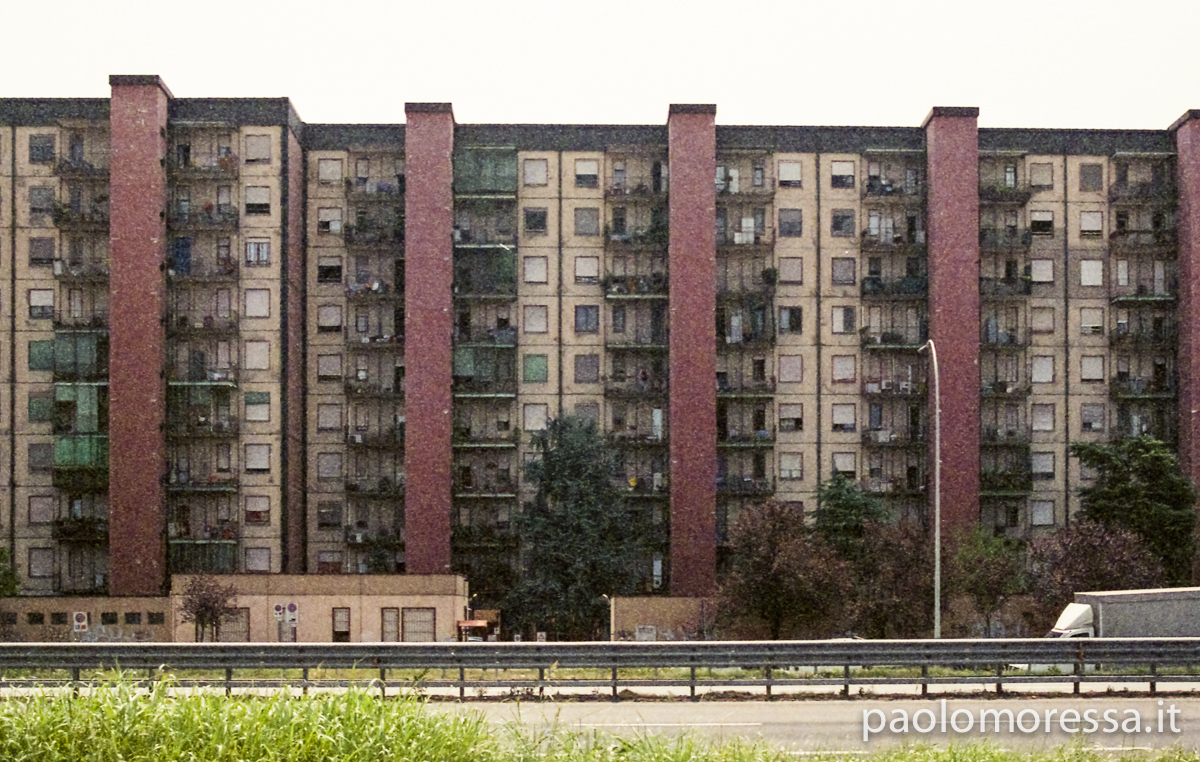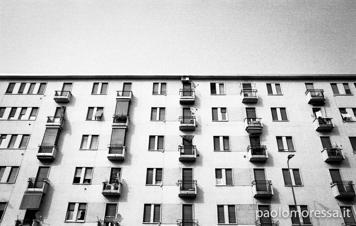 Una grande e complessa città italiana, una calda giornata estiva e un supporto fotosensibile d’altri tempi. Tutti questi elementi raccontano lo spazio che l’uomo si è ritagliato col tempo nell’area periferica di Milano, palazzi su palazzi senza identità che racchiudono mille storie e mille diversità.