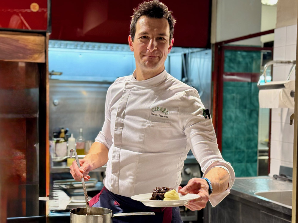 Dagli antipasti – il Cece Fiorentino rifatto al cavolo nero, il patè di Fagiolo Giallorino di Gallicano, le Patate Gialle del Melo, la Mortadella di Prato Presidio Slow Food con fichi secchi e stracchino – ai primi piatti profondamente identitari: la Farinata col cavolo nero preparata con formenton della Garfagnana e i Testaroli, cotti nei tradizionali testi ma in ceramica, di origine etrusca, serviti con una pomarola essenziale.