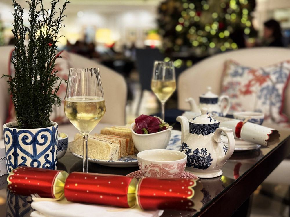Servito ogni giorno dalle 14 alle 18, l’afternoon tea è un percorso gastronomico che unisce precisione, estetica e piacere. Ad accoglierci, il tavolo apparecchiato come per una piccola festa privata: porcellane delicate, calici pronti per il Prosecco e, come segnaposto, i tradizionali Christmas crackers rosso lacca, i tipici “petardi” decorativi della tradizione britannica che, una volta aperti, custodiscono un piccolo regalo, una barzelletta e una coroncina di carta.