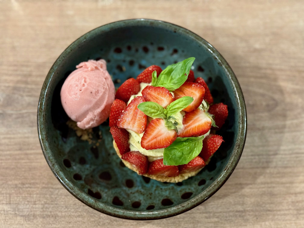 Il finale è fresco e fragrante: un dessert di fragole e limone con basilico, seguito da una crème brûlée che celebra la classicità senza cadere nella banalità.