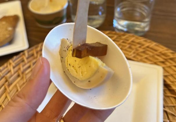Il tutto accompagnato dalla leggera maionese realizzata con il celebre uovo intero di Paolo Parisi, e da una fresca e tipica pappa al pomodoro. Ancora, una pizza con uova e speck, per concludere con marmellate e biscotti friabili alle uova, apparentemente identici, ma realizzati con farine speciali, miele al sentore di rosa, pepe agrumato e molto altro.