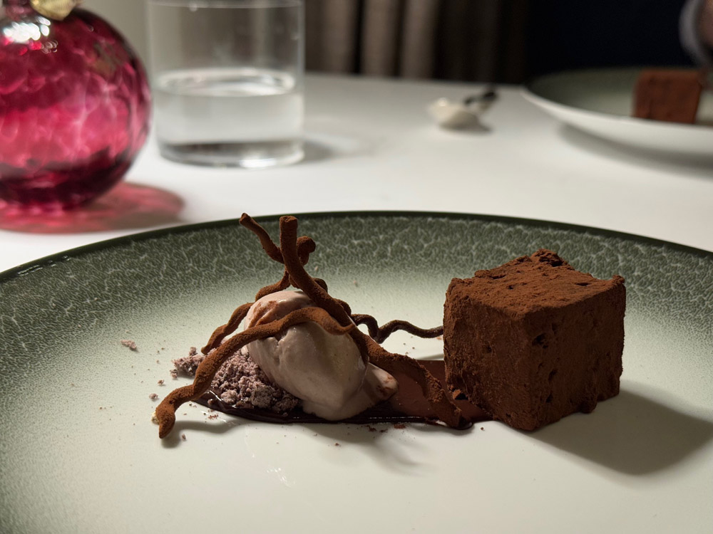 Il piatto di brownie, ramo di cioccolato, gelato alle olive nere e sale di Gozo è forse il manifesto più chiaro della filosofia di Rosamì: non dolce, non consolatorio, ma profondamente gastronomico. Un finale che ha il merito di essere coerente fino in fondo.