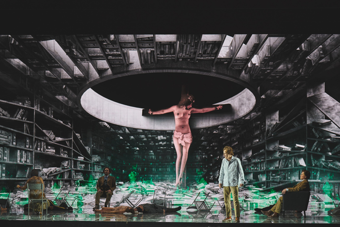 Davide Livermore riprende così questa forte identificazione dell’autore con l’opera, riproponendo il ritratto di Busoni come maschera in tutti i personaggi, sfaccettature psicoanalitiche di un introspezionismo intimo: buona l’idea, soprattutto per i due personaggi principali, Faust e Mefistofele, che si guardano a specchio come facce di una stessa medaglia, ma il cui uso pressante si fa in ultimo un po’ ridondante. Per il resto la regia risulta visionaria e dal grande impatto visivo, ben orchestrata e di maggior coerenza rispetto alla Traviata in scena nelle stesse settimane. Davvero spettacolari i video tridimensionali ad alta definizione della premiata ditta D-Wok, sul grande Led wall che chiude il palco, insieme alle pareti specchianti delle scene di Giò Forma dalla grande suggestione.