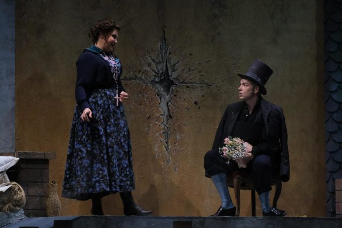 L’altissima poesia di questa Bohème aveva bisogno di una direzione musicale pressoché perfetta e di un cast all’altezza ed ora che, giù in platea, abbiamo ancora una volta pianto le nostre oneste lacrime, possiamo dire che gli interpreti giusti c’erano tutti: a cominciare, naturalmente dalla bacchetta di Juraj Valčuha, che scrive qui a Napoli un ulteriore capitolo della sua – per noi troppo – breve avventura partenopea. Non saremo mai abbastanza grati al Maestro per l’immenso compito che si è assunto in questi anni, dell’incessante e silenzioso lavorìo di lima per render sempre più perfetto il sound della nostra Orchestra, per uscire sempre più da provincialismi e pressapochismi: anche in questo caso, ha agito con la sobrietà che lo contraddistingue, sapendo trovare il giusto tono anche in una partitura che concede pochissimo spazio al sinfonismo, lavorando di cesello, sui particolari impressionistici, sull’immenso patchwork che è spesso l’opera picciniana, dove il sapore dei particolari, se giustamente dosato, dona grazia all’intero lavoro.