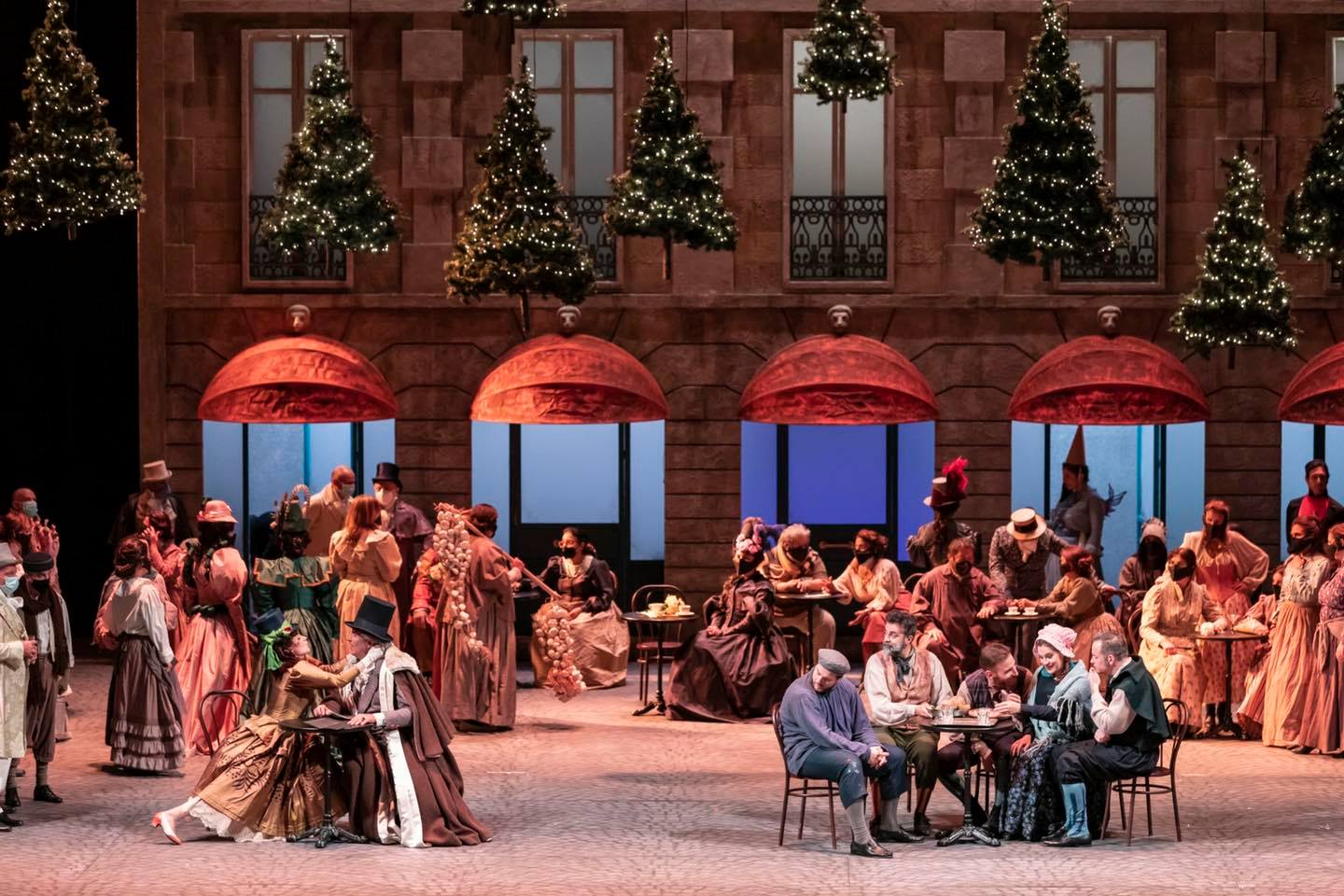 Così, prima della prima di quest’anno – l’Otello della ritrovata giovinezza verdiana – ci ritroviamo in platea per celebrare l’opera per antonomasia dedicata alla giovinezza amata e definitivamente perduta, alla necessaria morte dei sogni perché cominci, finalmente, la vita: ci viene regalata La Bohème che si affida alla consolidata direzione di Juraj Valčuha, ormai purtroppo al termine del suo fruttuoso mandato di direttore artistico, e la regia di Emma Dante, la Bohème che doveva aprire la passata, maligna stagione della Covid e la cui messa in scena fu poi annullata per necessità. Naturalmente non poteva mancare il coro degli interessati melomani sempre in cerca della più zeffirellica pedanteria da ricercare in ogni rappresentazione come la fenice del pedissequo rispetto del… libretto (!!!): a costoro il solo nome d’una prestigiosissima regista (donna per di più!) come Emma Dante ha fatto venir l’itterizia con buon anticipo, presagendo, con la complicità di qualche giornalista poco avvezzo a lirica e affini, disastri e rivoltamenti vari nelle tombe dove, sereni, riposano i padri.
