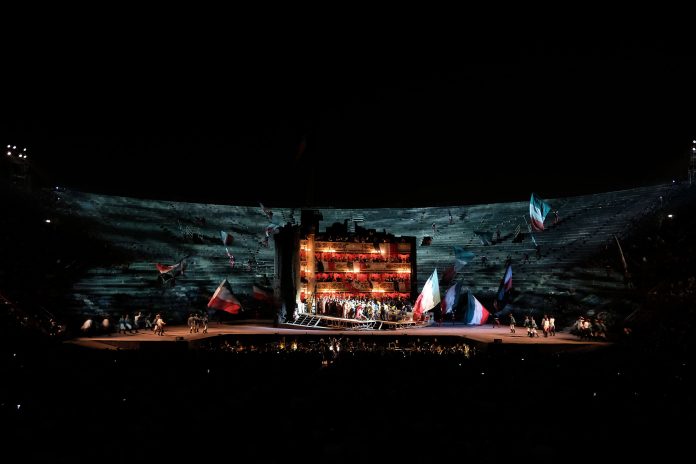 Apertura di stagione quanto mai attesa quest’anno per l’ente Arena di Verona: attesa perché forse sancisce un nuovo inizio dopo i turbolenti mesi di commissariamento, attesa perché si apre con una nuova produzione (cosa che non succedeva ormai dal 2013) e attesa perché questo allestimento si annunciava particolarmente intrigante viste le anticipazioni sulla regia di Arnaud Bernard e le scene di Alessandro Camera.
