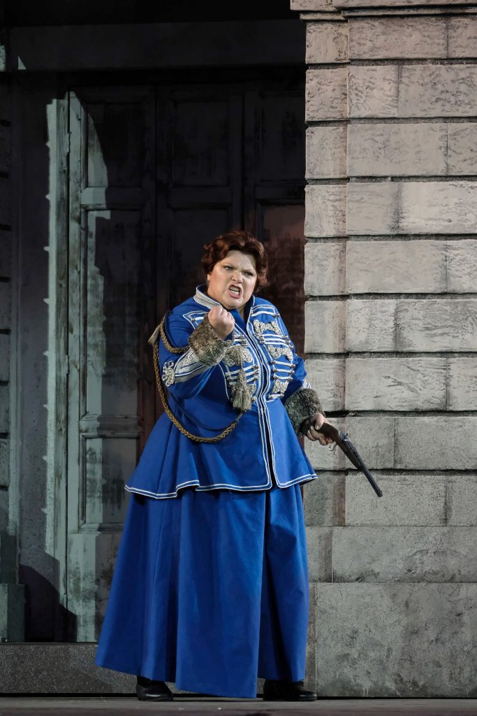 Arnaud Bernard vince, ma vince facile. Dopo tanti anni di “non idee” finalmente in arena se n’è vista una che funziona. Dopo tanti anni, uno spettacolo che abbia davvero il senso di spettacolarità, troppo spesso si confonde l’idea di “scenografia” con quella di “regia”. Quindi il bellissimo impianto scenico, felicemente disegnato da Alessandro Camera, lungi dall’avere un ruolo contemplativo, aiuta la narrazione rendendola cinematografica. L’enorme teatro alla Scala, magnificamente riprodotto sulla scena gira su se stesso dando vita a continui cambi a scena aperta, permettendo una narrazione coerente e fresca. Davvero si intuisce nella scenografia, oltre al senso di gioco, di fantasia, creatività anche un’italianità tipica fatta di inventiva e gusto al tempo stesso. Applausi a scena aperta sono stati tributati allo spaccato interno del teatro scaligero che riproduce parte del proscenio, della platea e dei palchi fino al loggione. Niente però è fine a se stesso.