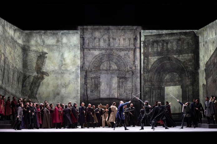 E poi ci sono i costumi, che il disegno voluttuoso di Lorena Marín pone in un immaginario, colorato, lussureggiante e rassicurante (per i cultori della fedeltà librettistica) medioevo in cui la severità del gotico è già pronta ad aprirsi e a sbocciare alle delizie del primo rinascere degli usi e delle arti: a loro il compito, ben chiaro all’idea registica, di mediare tra vecchio e nuovo, tradizione e innovazione, addolcendo la pillola per inconsolabili melomani. Forte di tutti questi elementi, la narrazione procede allora spedita, uscendo dalle secche dove il tempo e il mutar del gusto l’avevano incagliata, rendendola non solo credibile ma addirittura naturalissima, riflettendo e riassumendo l’esperienza di ciascuno, rinnovando quel miracolo che si chiama teatro e che ieri sera si è ancora una volta realizzato di fronte ai nostri occhi, sciogliendosi, alla fine, in lunghissimi applausi per tutti i protagonisti.