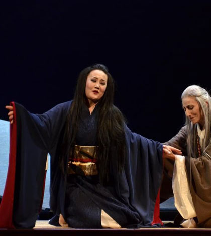 La buona conduzione registica e musicale si rivela anche nella capacità di dirigere gli attori: il cast, anch’esso per larga parte giovane e meritevole, sa infatti stare sulla scena e muoversi in modo appropriato, cosa che non sempre è scontata, in verità, per il teatro d’opera; anche la loro espressione musicale, appassionata e calda, è comunque in generale misurata e consonante e l’orchestra non si sovrappone mai al canto. Il ruolo del titolo è interpretato da Yasko Sato, che si inserisce nel solco delle grandi interpreti nipponiche di Butterfly – a partire da Tamaki Miura, che per prima ne indossò i panni nel 1923 – che hanno il vantaggio, rispetto alle colleghe occidentali, di non dover mimare il gesto accorto e misurato, avvezzo ad una tenerezza sfiorante e pur profonda, facendo già parte, questo, del loro imprinting; se a questa dote innata, s’aggiunge ciò che invece è frutto del lavoro e dell’applicazione, che è perfetta dizione, voce morbida mai stridente negli acuti, appropriatezza drammatica del gesto, mai ridondante ed eccessivo, è facile prevedere per questa interprete un futuro che le apporterà più d’una soddisfazione. Molti applausi, per lei, alla conclusione, e anche alla fine dell’unica vera aria dell’opera, la celebrata Un bel dì vedremo resa con gran raffinatezza e struggente malinconia nella voce e nel gesto. La voce di Antonio Corianò ha l’adeguato volume che ti aspetti dal tenore che interpreti Pinkerton, e il cantante sa trovare teneri accenti nel duetto della sera, spavaldi toni mondanamente colloquiali con il console, sprezzantemente definitivi con il parentame e le bonzerie che l’ingombrano. Più difficile, decisamente, interpretare lo sfuggente ma più vero Pinkerton del finale, degli scontati rimorsi fuori tempo massimo dell’Addio fiorito asil, ottenendo comunque più della sufficienza. Sharpless è personaggio centrale, in Butterfly, che possiede una sua sofferta sfaccettatura, tra accettazione della diversità e impotenza d’azione, limitandosi a dibattere con la sua coscienza le grandi questioni etiche che la vicenda pone: a questa complessità risponde Mario Cassi restituendoci un personaggio che, se sempre adeguato sotto il profilo interpretativo e drammatico, a volte non lo è pienamente sul piano musicale, immaginando noi il console americano con una voce di maggior maturità e autorevole profondità: se la voce, infatti, è di grand’effetto sui toni acuti, riesce invece difficilmente percepibile su quelli gravi e nelle scene d’insieme. Annunziata Vestri interpreta un’arcana Suzuki pensosa e sacerdotale nella sua regale imperturbabilità, vera ancora di salvezza per Butterfly: ha una voce decisamente interessante, dal bel timbro bruno; Goro è interpretato da un insinuante e allusivo Francesco Castoro. Tra i ruoli minori si segnala il ricco Yamadori, un vero cameo per ricchezza di costumi, ironia interpretativa e registica, gioco dell’interprete (Marco Bussi) con un personaggio reso con grande aderenza e gioia teatrale.