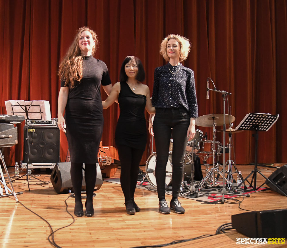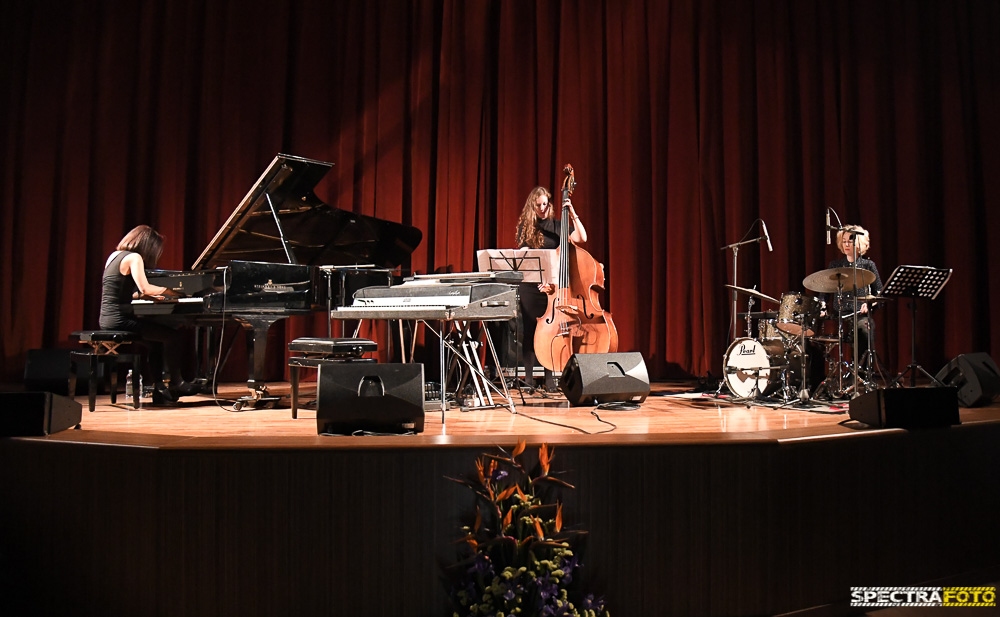 Il concerto è iniziato con alcune composizioni originali della Yamanaka al fender rhodes ed è subito MUSICA, continuando poi con la speciale interpretazione e rivisitazione di alcuni standard jazz famosissimi come “Take five” intrecciata con un’inedita “Estate” e concludendo con una trascinante “Summertime” che ha lasciato il pubblico senza fiato. Il feeling tra le tre musiciste è assolutamente evidente, tutto è assolutamente perfetto e fuso in un’alchimia di note e di melodie.