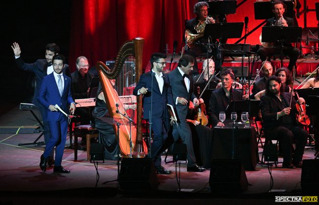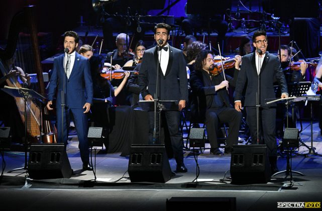 Il concerto è iniziato con l’omaggio ai brani classici della lirica e dell’opera come “La forza del destino” “Nessun Dorma” , “L’elisir d’amore Una furtiva lagrima”,” E lucevan le stelle”, alternandoli a brani della musica internazionale come “My Way” interpretati da Gianluca e Piero, di musical americani come “Maria” o “Tonight”(West Side Story) e omaggi alla musica della tradizione classica napoletana come “Torna a Surriento” “O paese d’o sole”, ” ‘O surdato nnammurato”, “O sole mio” e ad alcune composizioni in spagnolo portate al successo da José Carreras come “En Aranjuez con tu amor” o “no puede ser” grandissimo successo di Placido Domingo, per concludere poi, per un richiestissimo bis, la loro canzone “grande Amore” con tutto il pubblico in piedi in Arena a testimonianza di quanto il bel canto e il loro modo elegante di porsi sia riconosciuto ed apprezzato.