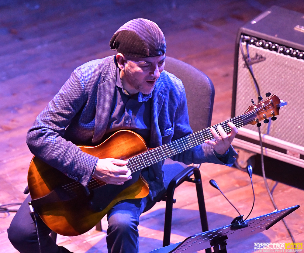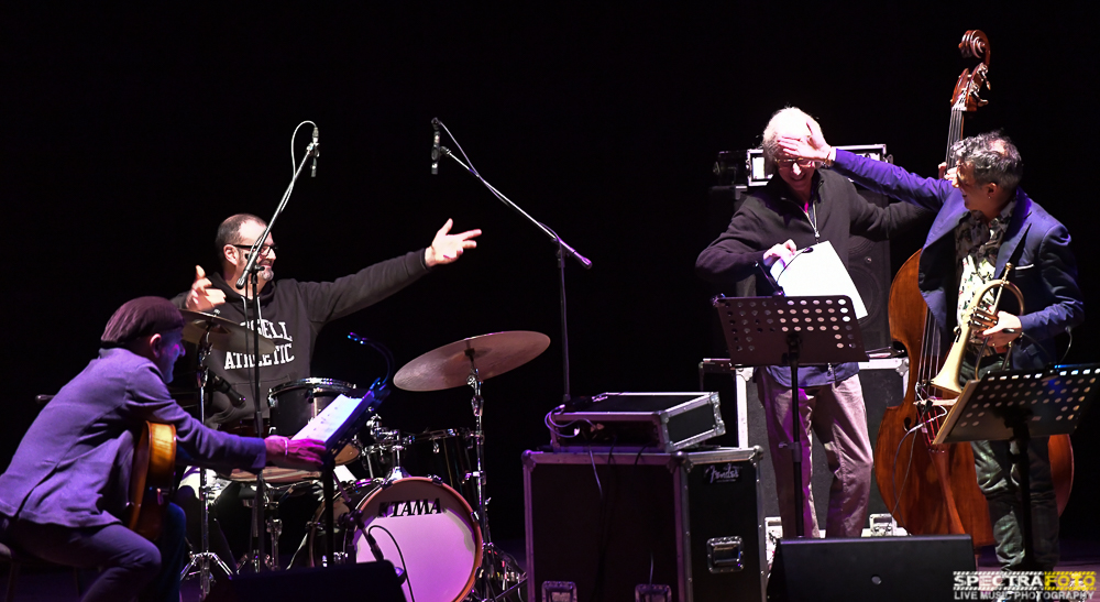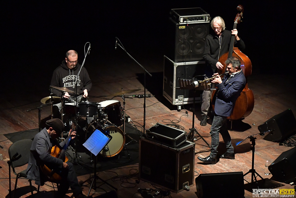 Il pubblico, in assoluto silenzio ed ascolto della musica presentata, ha giustamente omaggiato il gruppo con lunghissimi applausi, mostrando particolare apprezzamento soprattutto quando Fresu gioca sui dialoghi, puntando la tromba, o il flicorno, verso Ferra intreccia un fitto tessuto di domanda e risposta con l’amico chitarrista, o quando si lega al contrabbasso di Dalla Porta in un dialogo decisamente più ritmico, mentre Stefano Bagnoli riesce a legare ogni attimo degli altri musicisti con uno splendido lavoro con le spazzole e un intenso drumming di grande coinvolgimento.