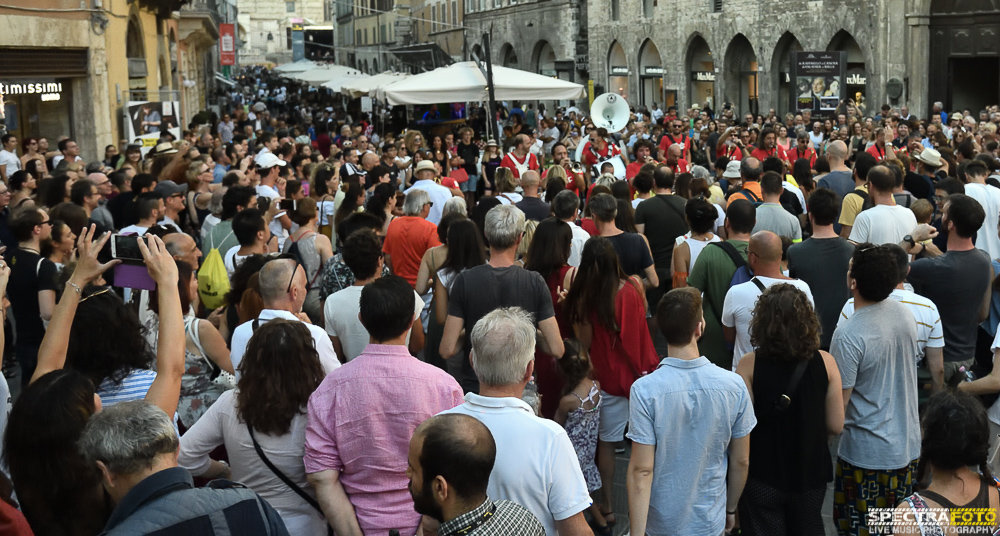 Il secondo giorno di Umbria Jazz 18 45esima Edizione inizia con le note della Street Parade dei Funk Off che echeggiano lungo tutto il Corso Vannucci, coinvolgendo tutti gli appassionati che nonostante il caldo sono già in piazza dal mattino per seguire i concerti gratuiti all’aperto previsti ai Giardini Carducci.
