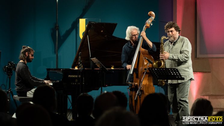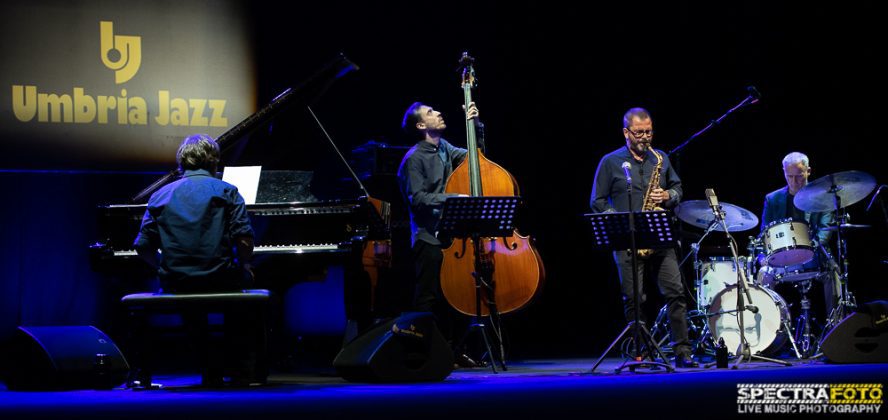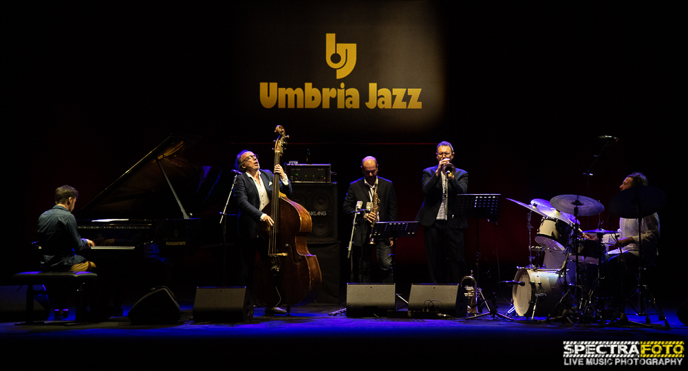 Al Teatro Morlacchi, nel tardo pomeriggio, è andato invece in scena il Rosario Bonaccorso Quintet con Rosario Bonaccorso al contrabbasso, Fulvio Sigurtà alla tromba, Enrico Zanisi al piano e Alessandro Paternesi alla batteria. Ospite speciale, Stefano Di Battista al sassofono, che con Bonaccorso ha una lunga partnership. Il concerto è stato l’occasione giusta per presentare il nuovo disco inciso per Jando Music “A New Home” che lo stesso Bonaccorso ha presentato come “il disco che mi sono regalato, alla soglia dei 60 anni, perché’ avevo bisogno di mettere insieme le emozioni e il vissuto di chi come me ha una nuova casa dentro dovuta alle emozioni di un’età che è bellissima da vivere”.