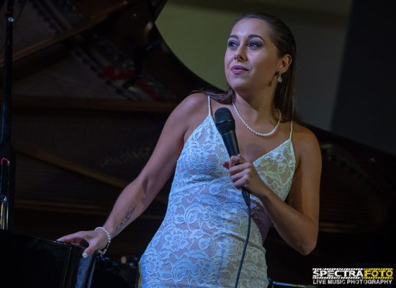 Prima di recarci all’Arena Santa Giuliana per il concerto serale, un salto alla Sala Raffaello dell’Hotel Brufani per ascoltare la voce della rivelazione jazz di questo Festival : Veronica Swift, giovanissima cantante americana, figlia di una nota cantante jazz, scoperta e portata in Italia da colui che è un vero e proprio talent scout di Umbria Jazz Enzo Capua che, ancora una volta, ha fiutato in Veronica un vero e proprio talento che siamo sicuri la porterà molto lontano nella sua carriera artistica. Sul palco della Sala Raffaello incanta la platea insieme al talento indiscusso del Benny Green Trio, composto da uno straordinario Benny Green al pianoforte, protagonista di quasi tutte le notti della jam session di Via della Viola, oltre ad essere leader indiscusso del suo Trio e accompagnare Veronica in concerti assolutamente coinvolgenti.
