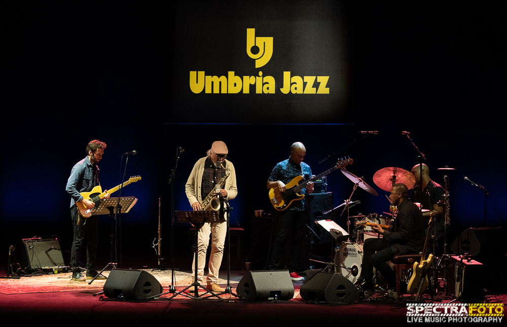 Dopo tanto puro rock, resta giusto il tempo di correre nuovamente al Teatro Morlacchi per poter applaudire e fare qualche scatto veloce ad uno dei miti della musica del mondo non solo del jazz come Charles Lloyd. Intensa carriera alle spalle, dopo una lunga parentesi di riflessione, il sassofonista americano tornò alla fine degli anni ’80 alla musica e ai tour in Europa registrando poi alcuni album come “Wild man Blues” che fu un autentico successo. A Perugia arriva con un nuovo progetto “Kindred Spirits” e con una nuovissima formazione che unisce ai talenti chitarristici di Julian Lage e Marvin Sewel alla sua fedele e solida ritmica composta da Reuben Rogers ed Eric Harland, con il quale conquista letteralmente il pubblico del Teatro Morlacchi.