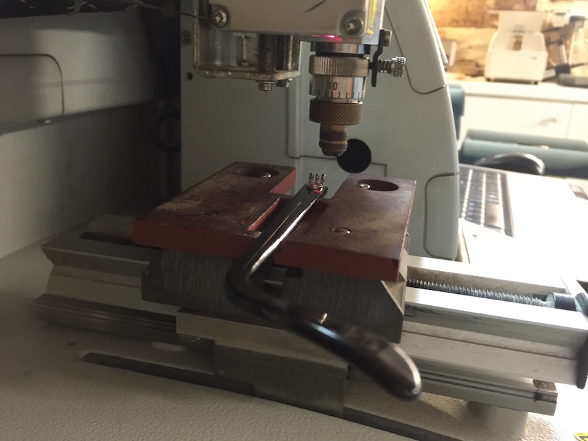 Passo nel secondo ambiente per la centratura delle lenti. Dopo 45 minuti sono libero. Dovrò tornare la mattina seguente per terminare gli ultimi aggiustamenti. Mi domandano anche di riflettere su cosa voglia far incidere su ciascuna delle due aste: ho tutta la notte per rifletterci. Alla fine mi decido per “Maison Bonnet pour N.Derigny” sull’asta destra, e “A me piace l’Italia” sulla sinistra.
