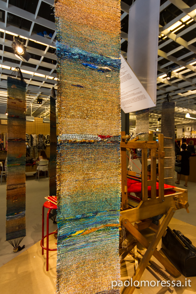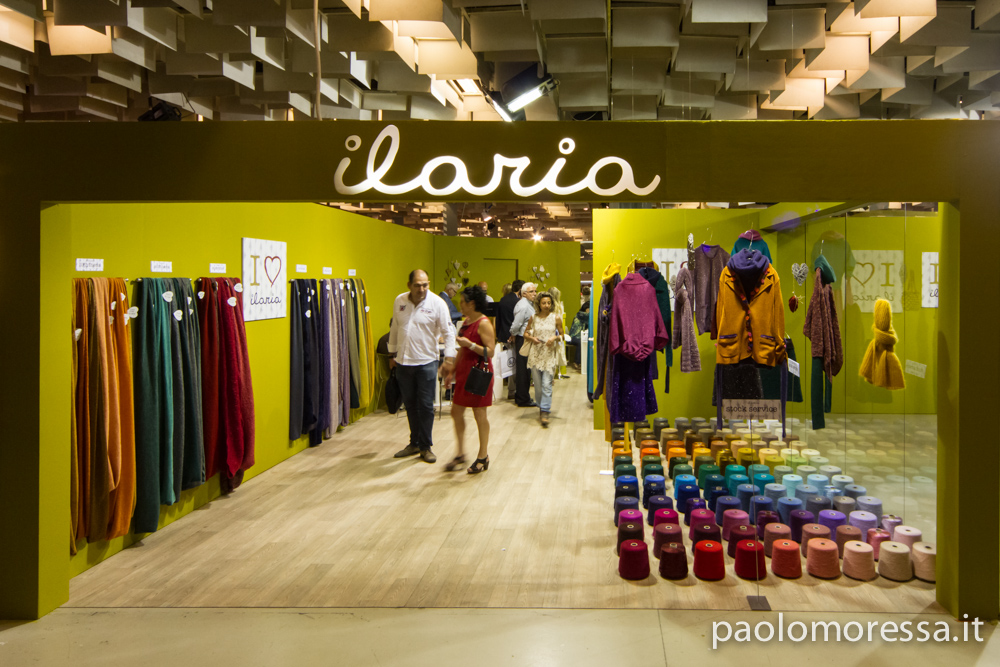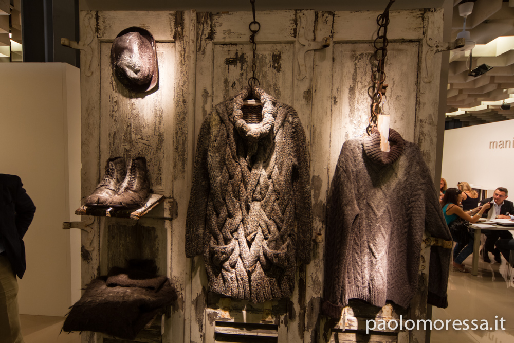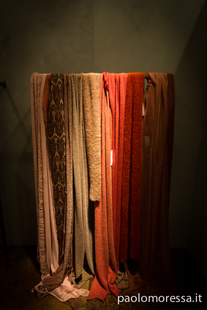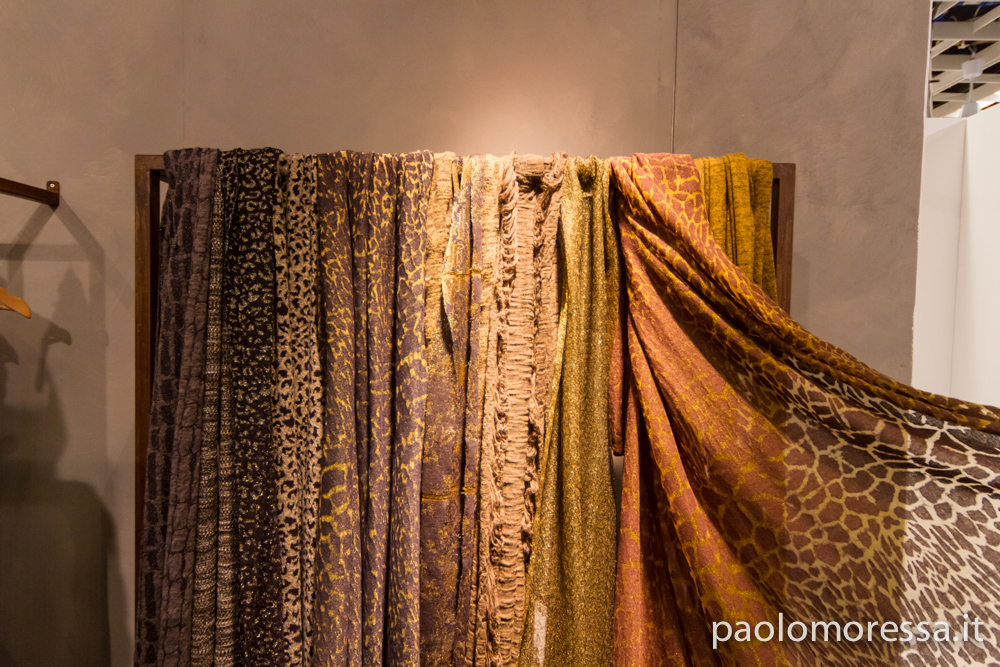 LANIFICIO DELL’OLIVO ha esposto i teli e capi di abbigliamento in ordine cromatico e tematico, con gran gusto.