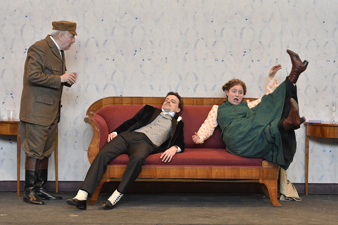 Il vero crescendo arriva con La domanda di matrimonio. Qui la macchina comica gira a pieno regime. Il litigio precede l’amore, la burocrazia soffoca il sentimento, la proprietà diventa ossessione. Alessandro Averone porta all’estremo l’ansia ipocondriaca di Lomov, trasformandola in un dispositivo scenico precisissimo: il corpo cede, la parola inciampa, il pensiero collassa. La scena del “praticello dei Bovi” è una piccola lezione di tempo comico e di crudeltà cecoviana. Si ride molto, ma sempre sul bordo del precipizio.