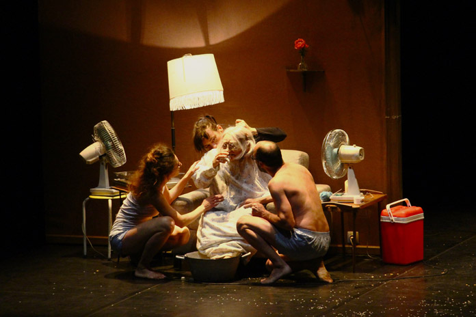 La fine del mondo arriva di domenica. Non con un’esplosione, ma con un pranzo da apparecchiare. Il giorno del riposo e della ritualità domestica si trasforma in un esercizio ostinato di rimozione: mentre il clima collassa, una famiglia si siede a tavola e continua come se nulla stesse accadendo. È in questa frattura, tra quiete evocata e apocalisse imminente, che Dimanche, scritto e diretto da Julie Tenret, Sicaire Durieux e Sandrine Heyraud, con la drammaturgia di Alana Osbourne, trova la sua traiettoria più lucida. Le compagnie belghe Focus e Chaliwaté, vincitrici dei Premi Maeterlinck per miglior spettacolo e creazione artistica/tecnica, portano al Teatro Fabbricone di Prato un lavoro di teatro visuale che coniuga invenzione e rigore.