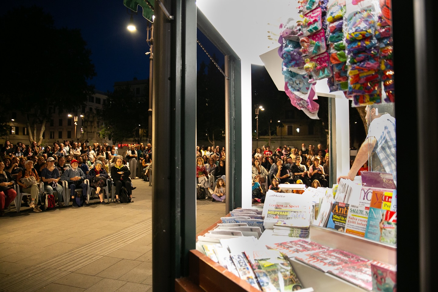 Last but not least applausi scrosciati e partecipati al testo. Una drammaturgia raffinata e commovente che ibrida palpiti, lacrime e sorrisi, come solo le migliori storie sanno fare. Gli rende lustro Matteo Cirillo col suo recitato sempre coinvolgente e senza sbavature ammiccanti, reti pericolose di banalità, in cui riesce sempre a non cadere. Bravo bravissimo anche Ariele Vincenti, che firma la regia, incastonando come una gemma il racconto proprio dentro una vera edicola, gentilmente offerta “a nolo” da un edicolante “resistente” di Testaccio. Quanto è stato bello esserci stati? Fatico a descriverlo, non mi resta che augurare a voi lettori romani di poter almeno una volta essere parte di questo piccolo grande drappello comunitario, che cerca di riunire in una rete di dialogo meta-teatrale tutti i quartieri della città eterna.