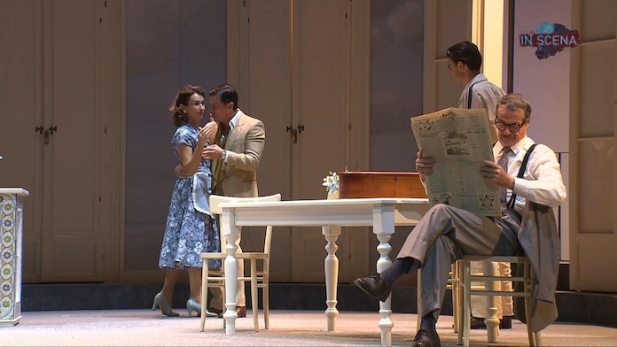 Passa quasi inosservata, così, la silenziosa rivoluzione dei figli: Roberto, già ingabbiato in un destino borghese senza slanci sulle orme di mammà e papà; Rocco, che cerca, invece, seppur confusamente, una propria direzione anche a costo di contraddire il modello paterno; e soprattutto Giulianella, personaggio decisivo, luogo drammaturgico in cui si manifesta una contestazione implicita del sistema familiare e prende forma un’idea di donna diversa, non più costruita sul sacrificio ma sulla possibilità di scelta. In questo senso, anche l’eleganza dei costumi anni Cinquanta sempre firmati da Crisolini Malatesta, pur coerente con l’impianto visivo dello spettacolo, finisce per accompagnare lo slittamento verso una dimensione più levigata, conciliata, un po’ ipocritamente consolatoria del racconto.
