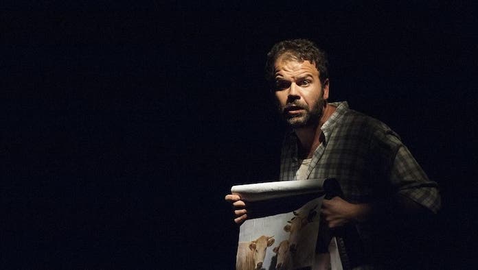E se il palcoscenico è lasciato del tutto alla attività dei fratelli, lui si presenta dalla platea, in una sorta di intervista televisiva, a metà, dunque, tra noi e la scena, vero punto d’incontro tra il mondo reale e quello teatrale, equilibrio precario tra verità e finzione: è, in tutto e per tutto, insomma, uno di noi, e non c’è certo di che gloriarsene, fino alla violenza finale, inutile, buia, nauseante.