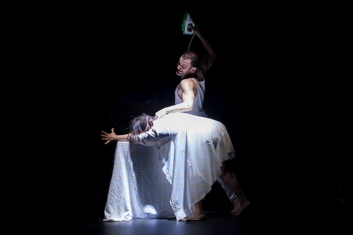 La casa in cui vivono, poi, non è un contenitore realistico, diventa lente, specchio di un meccanismo sottostante, dove piegare una tovaglia, prendere le tazze, versare il caffè sono gesti minimali, composti, meccanici che diventano, in scena, coreografati, rallentati fino a diventare rituale, la cura misura la performance del dovere, soppesando ogni briciola non raccolta bene da terra, ogni piega stirata male, ogni caffè servito troppo tiepido sotto lo sguardo degli altri, distratto o predatorio, mai protettivo. Lo spazio domestico è una trappola, lo spazio scenico è spesso essenziale ma claustrofobico: il tavolo, le sedie, il letto, la cucina sono oggetti quotidiani che diventano strumenti di oppressione, piatti, tovaglie, caffettiere non sono semplici accessori ma indicatori di ruolo e potere e ogni arnese domestico – come un ferro da stiro – può trasformarsi in strumento di morte.