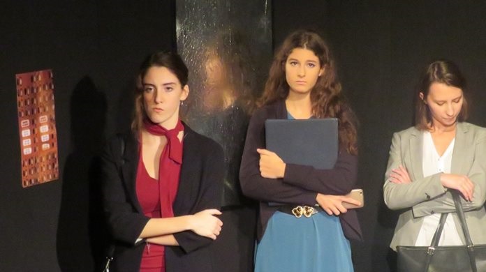 Ben vestite, tacchi alti, pronte all’audizione presso un’agenzia di moda, pigiano il pulsante ed entrano, chi dice buongiorno: qualcuna risponde, qualcuna no, qualcuna entra e non saluta. C’è chi ha voglia di parlare ed esprime il desiderio di mangiare una pizza funghi e prosciutto per intavolare un dialogo ma, nessuna risponde. Sono ragazze ognuna sulle sue: chi non nasconde che sarebbe disposta a concedersi all’impresario per la parte: chi figlia di impresari appunto avvezzi a provinare in modo più intimo le candidate. C’è chi è incinta, chi rivela di aver provato la vasca idromassaggio al settimo piano suscitando clamore e stupore in qualcuna delle cinque ragazze in scena.